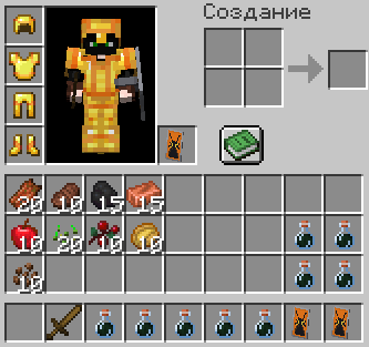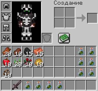 В инвентаре есть Демоническая кровь, дающая Силу II на 40 секунд и Моментальный урон,