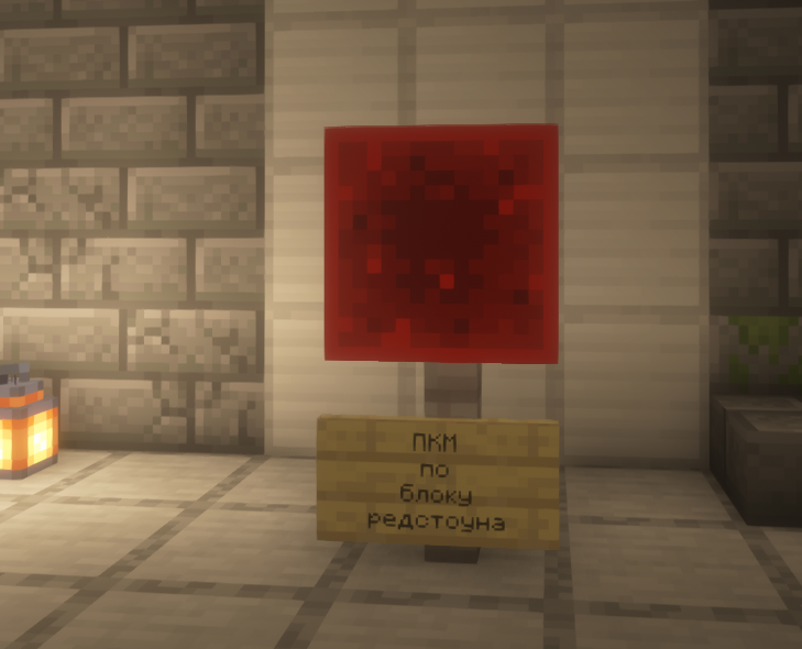5. И кликаете по блоку редстоуна для начала игры 🙂