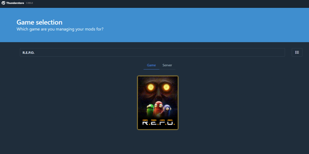 Вам нужно в поиске игр набрать «R.E.P.O.» и нажать Select game