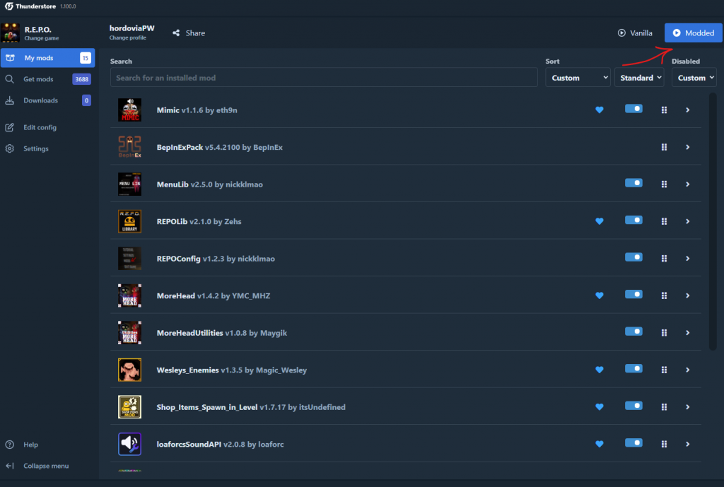Запускать игру через Modded